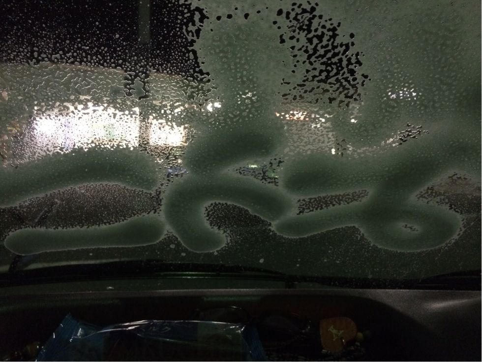 虫の死骸で汚れた窓をクリンビューで綺麗にします