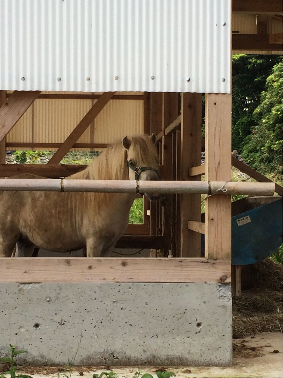 途中でポニーのところで車を止めてもらった