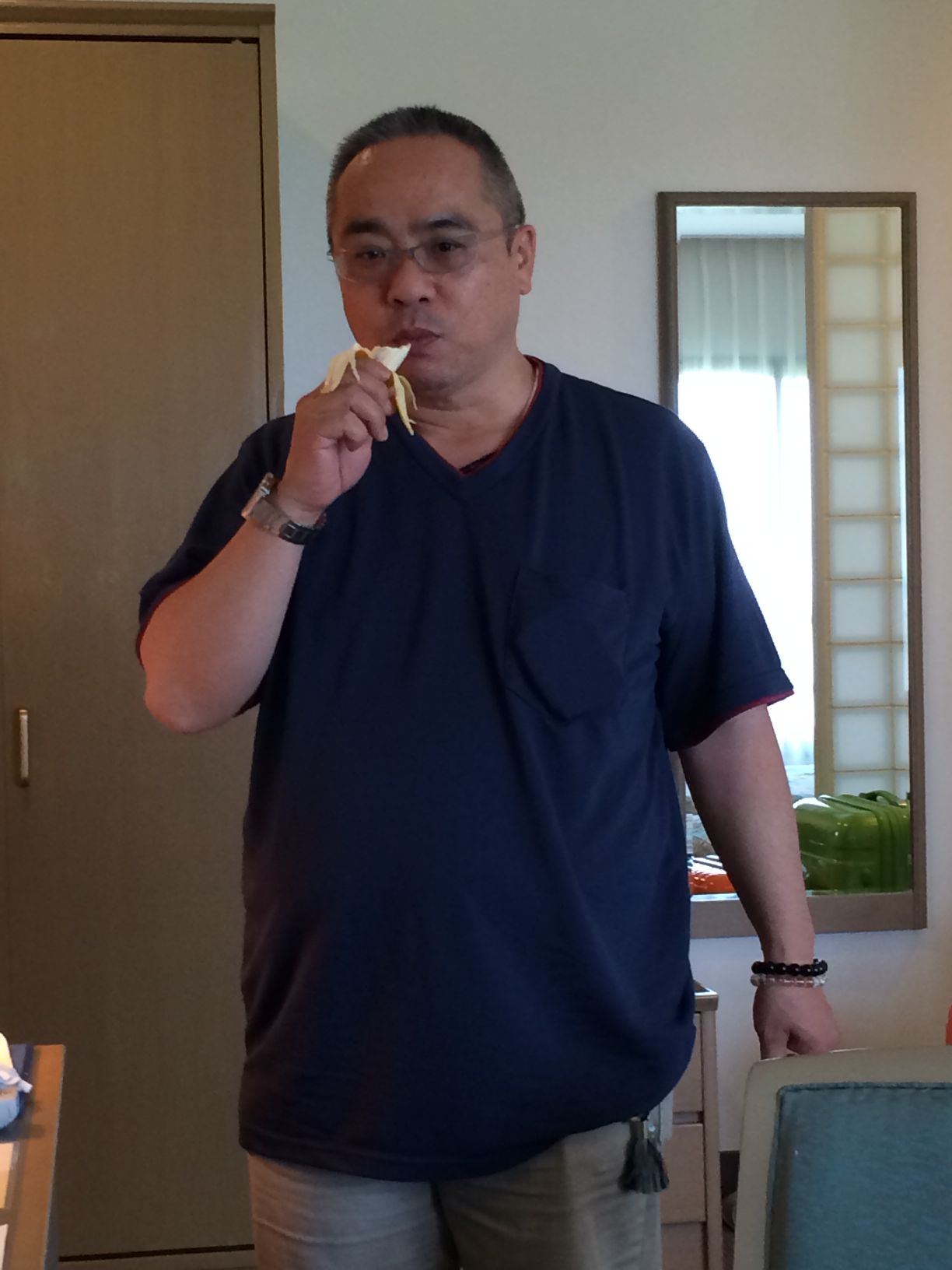 ホテルの部屋で社長はさっそく 島バナナ♪