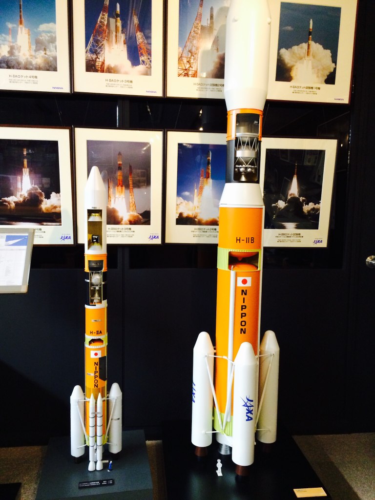 ロケットの模型や発射風景などがいっぱい展示されています