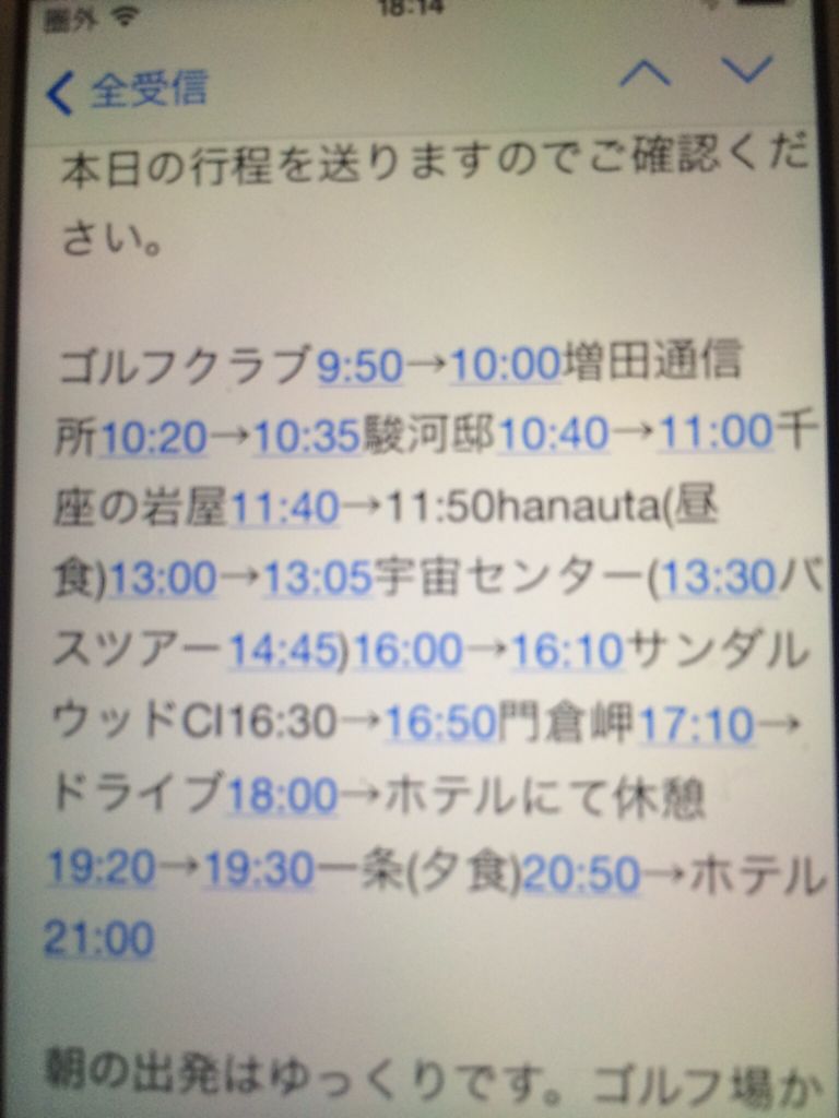 朝食を食べている頃、tanega島さんから こんなメールが届きました