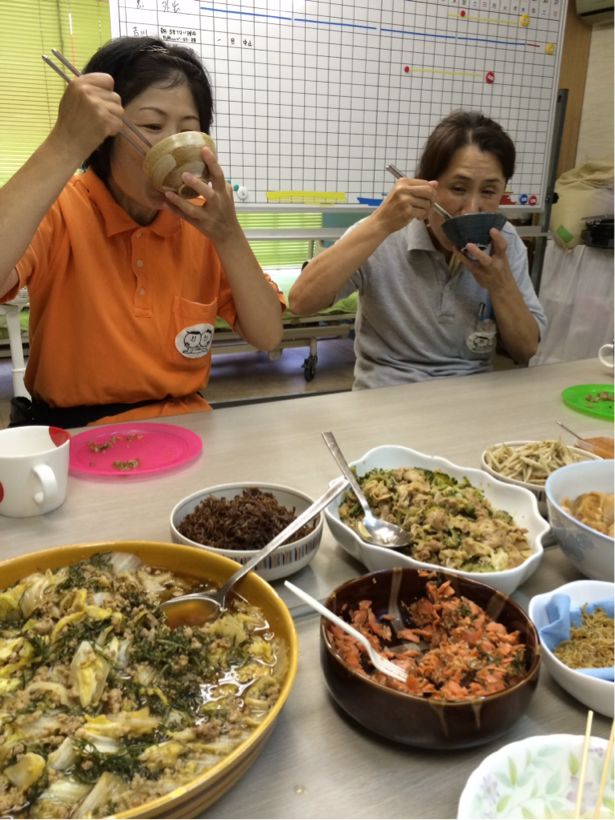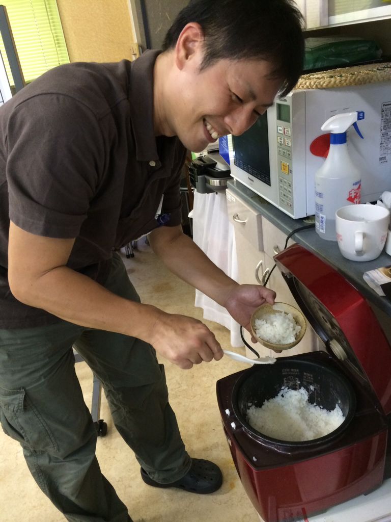 新米を喜んで食べてくれるスタッフさん達の様子に感激!