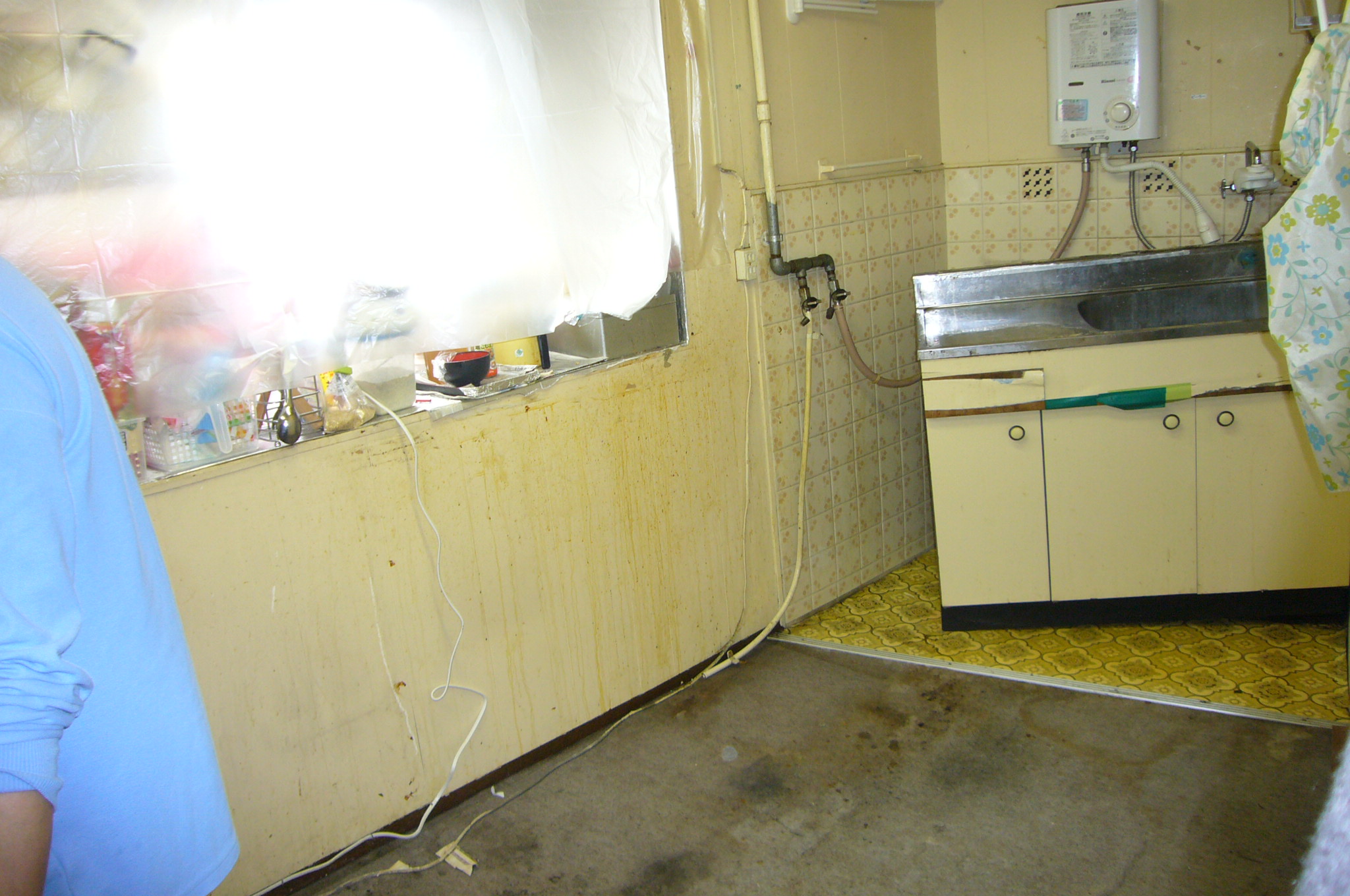 私たちが緊急呼び出しを受けた理由は、流し台を取り除くと壁のタイルがはがれていたとの事。