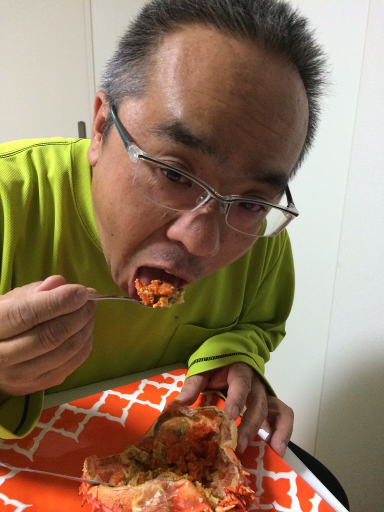 陽ちゃんは、カニは裁きながら口に入れて行くタイプですが