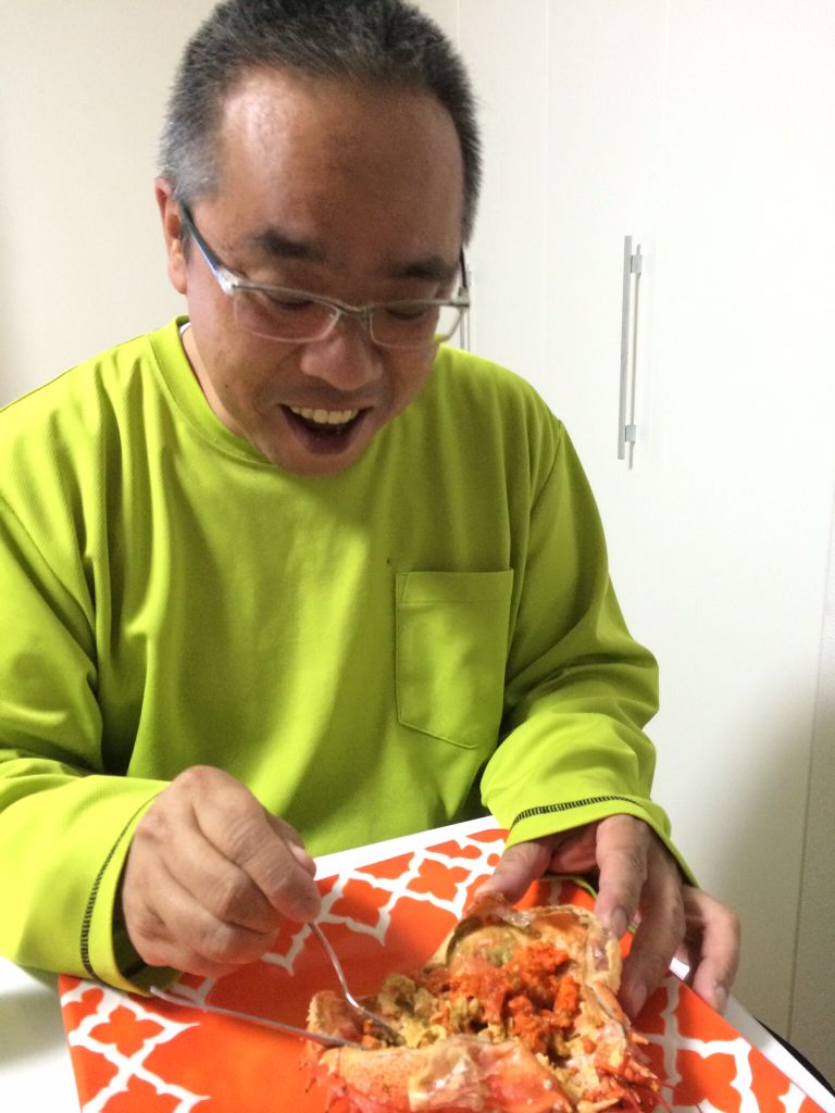 社長は、全部身をほぐしてから(陽ちゃんの仕事)まとめてカニ酢で