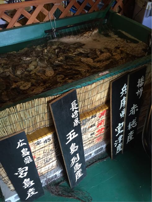 水槽には広島産 長崎産 赤穂産など様々な牡蠣が入っています