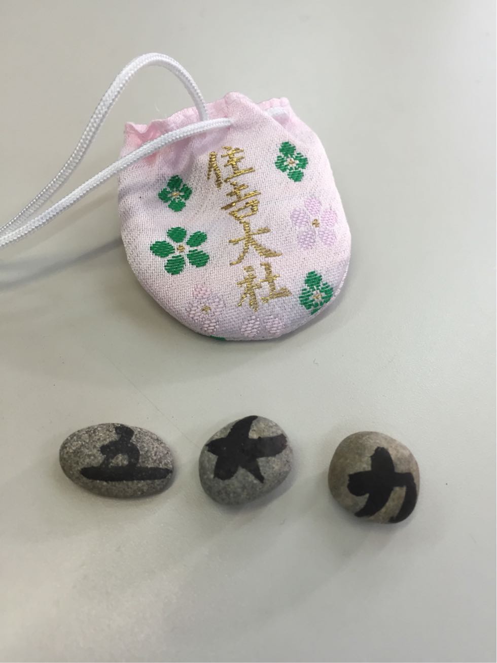五・大・力 の3つの文字をすべて探して、境内の中でお守り袋を購入します。