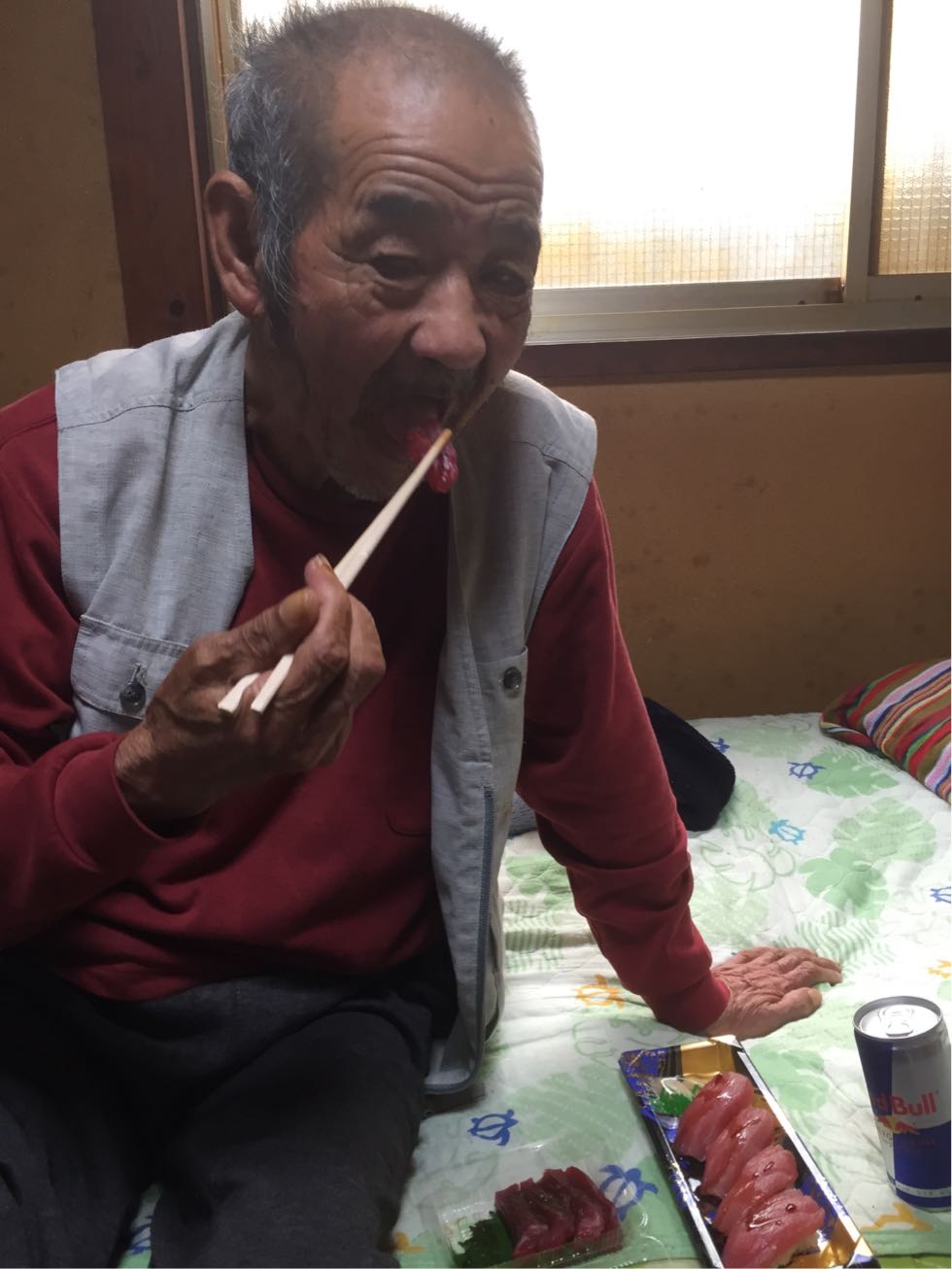 再びマグロを口にして下を向いて噛み、顔をあげて陽ちゃんを見て「おお~」