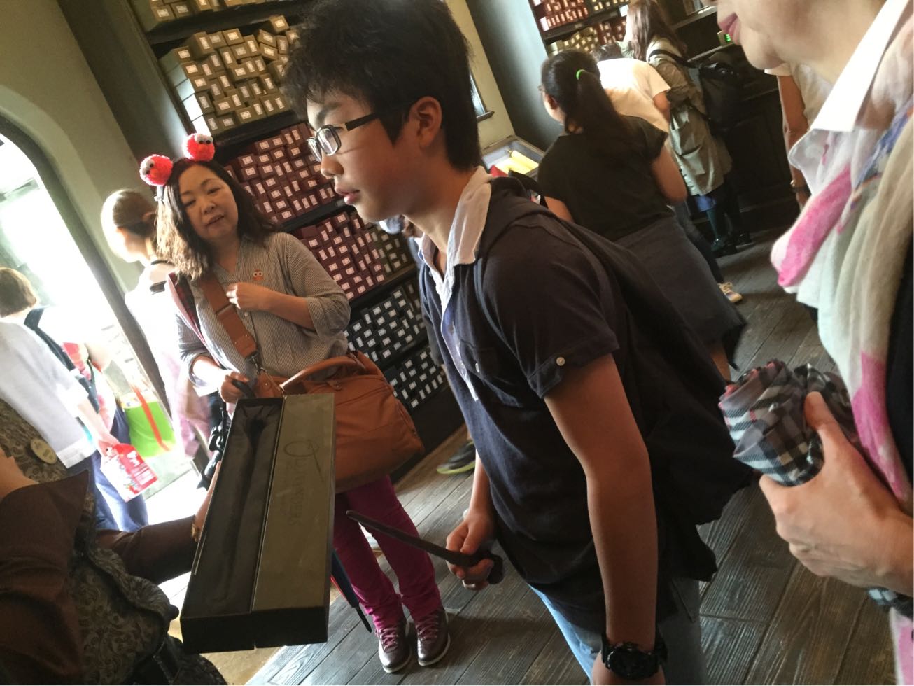 自分の杖を選んでもらった彼は、お土産やさんでこの杖の説明を聞き