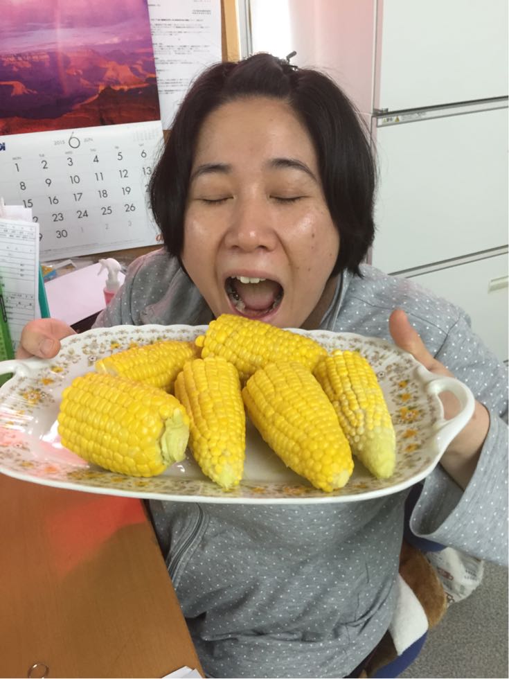 朝から、美味しいトウモロコシを食べて頑張りま~~す♪って言ってました。