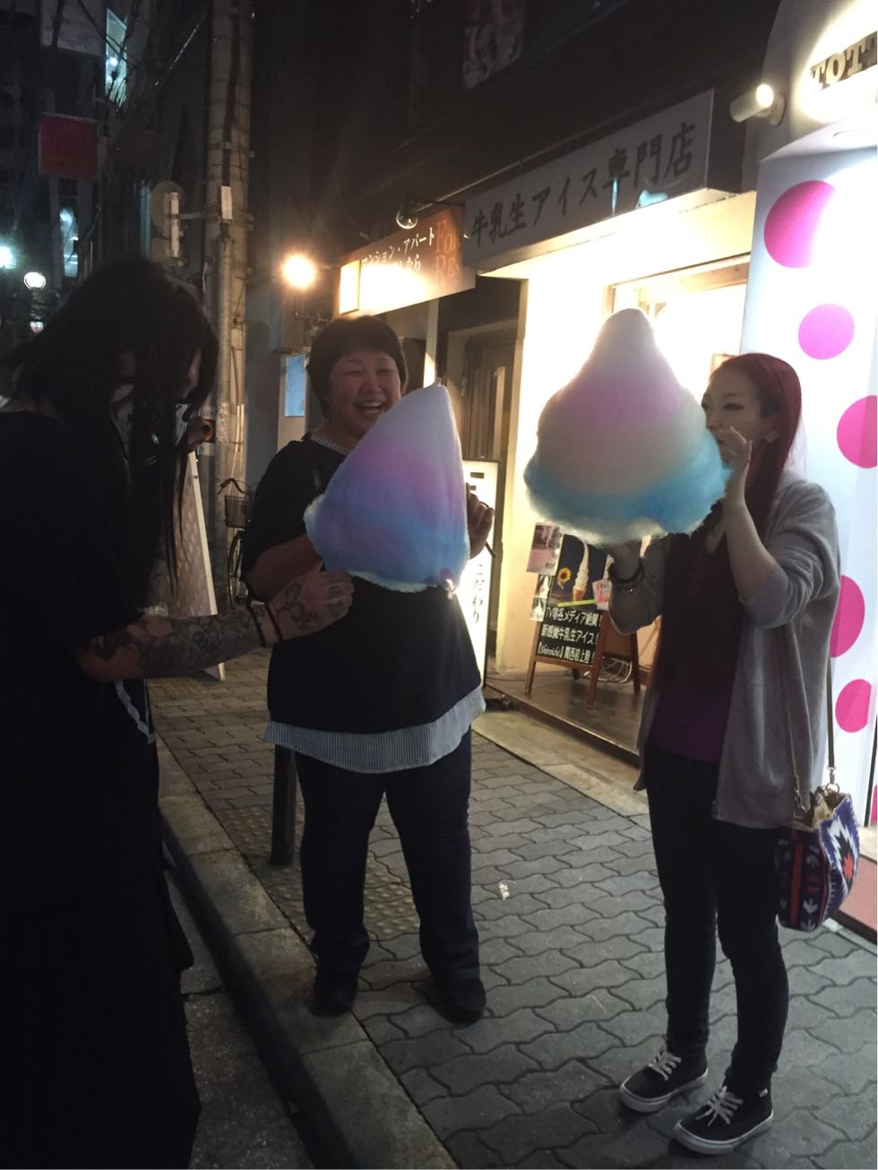 タッチの差で閉店してしまった綿菓子屋さんの前で、「大きいねぇ~写真撮ってもいい?」って