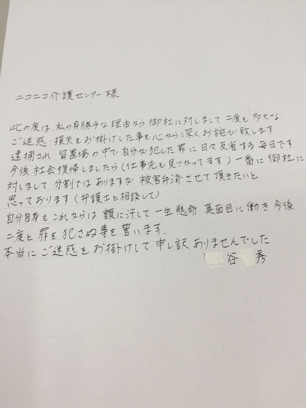 そしてこの文章は裁判での心象を良くする為の物です。