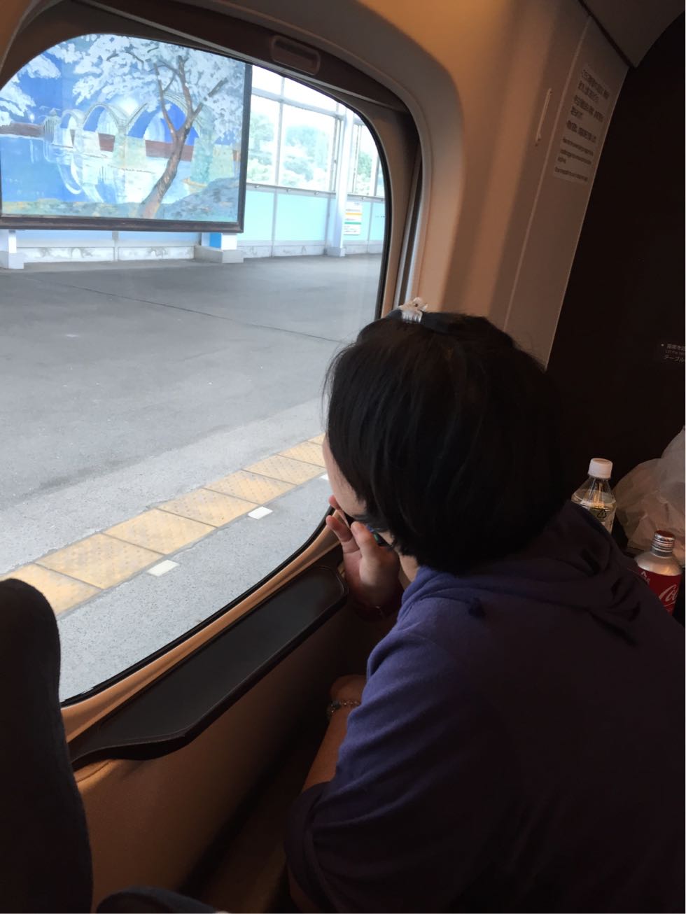 最後は座席に正座して後ろ向きに座っていました。