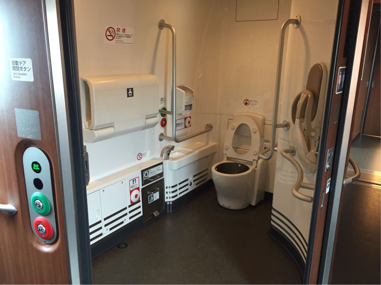 ユニバーサルトイレは車いすでも余裕ですね♪
