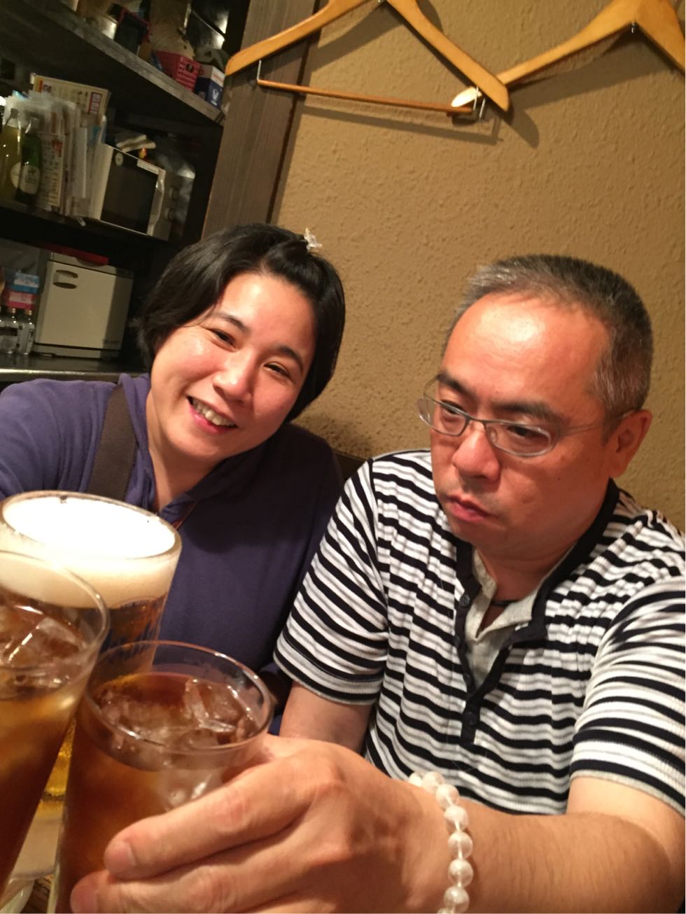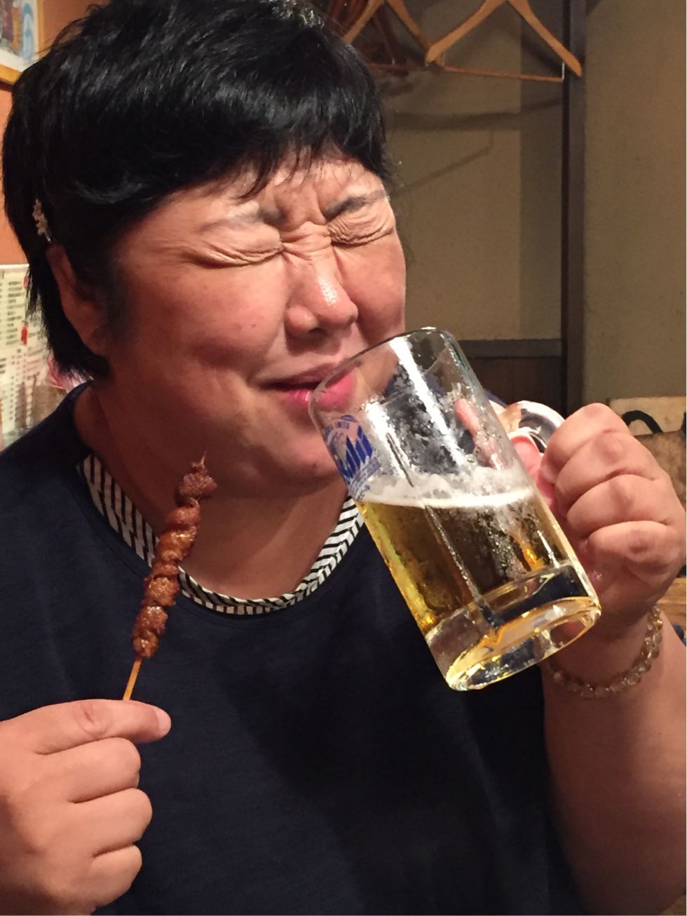 陽ちゃんも杉かなちゃんのビールを一口♪