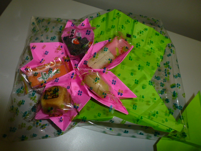 折り紙の桜の花の器にお菓子を入れてラッピング♪