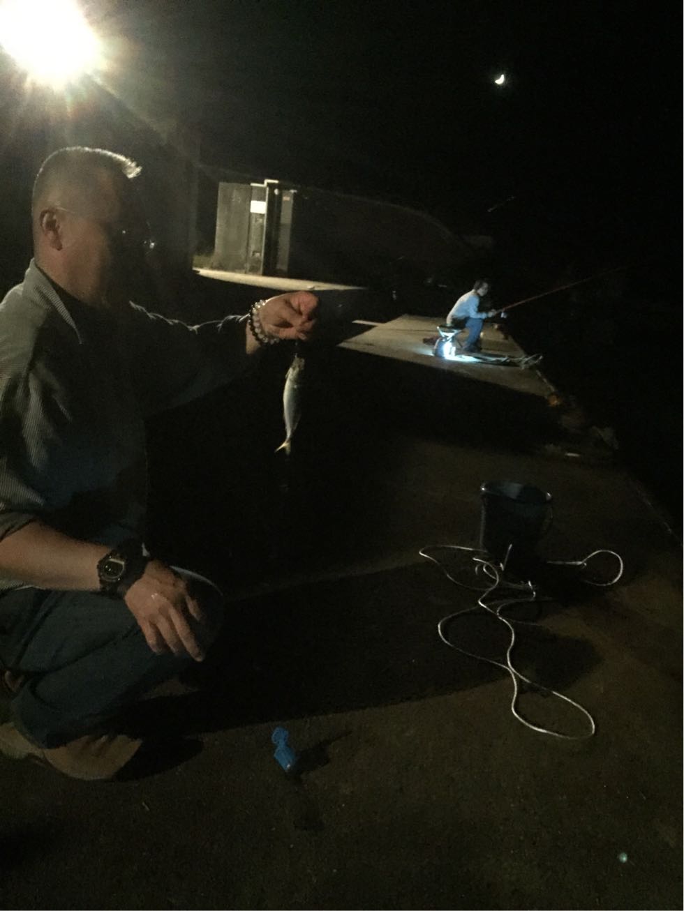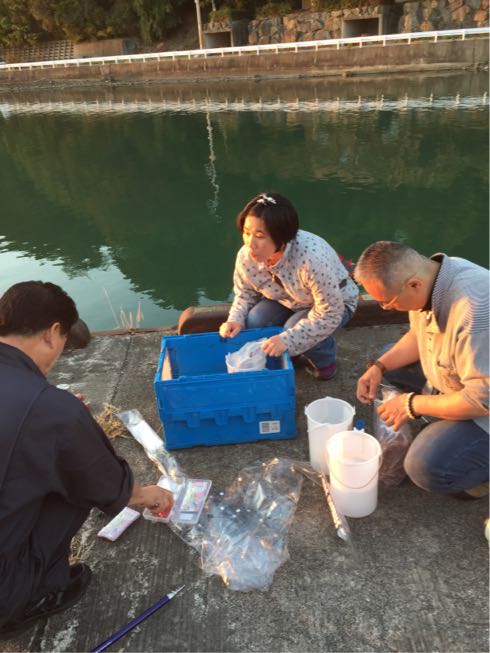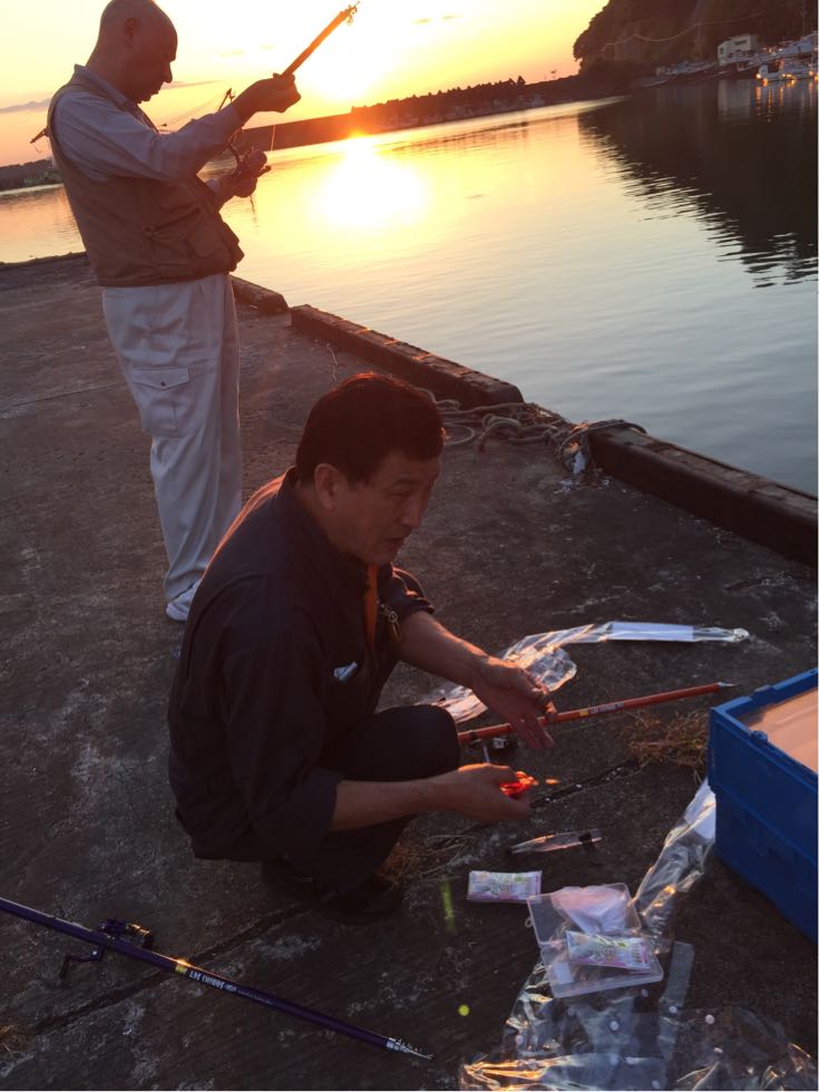 師匠たちは、反対側に波止場で投げ釣りでチヌ狙いでした。
