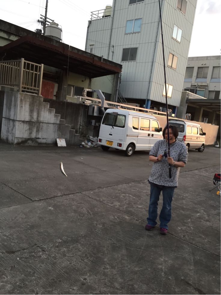 「釣れた~♪」の声に社長が飛んできて魚を外します(笑)