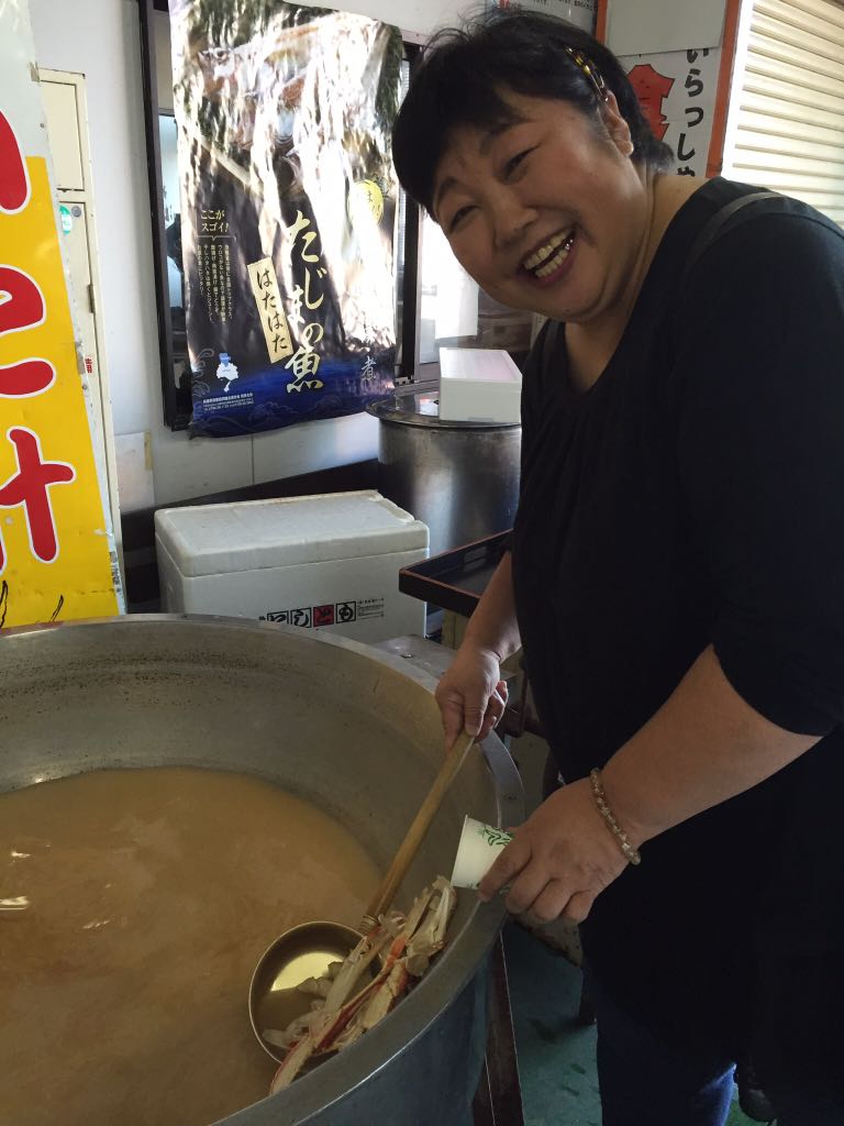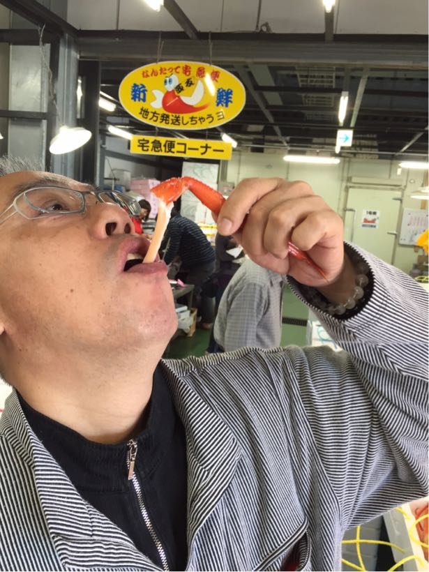 名物大将が、試食のカニを剥いてくれました。