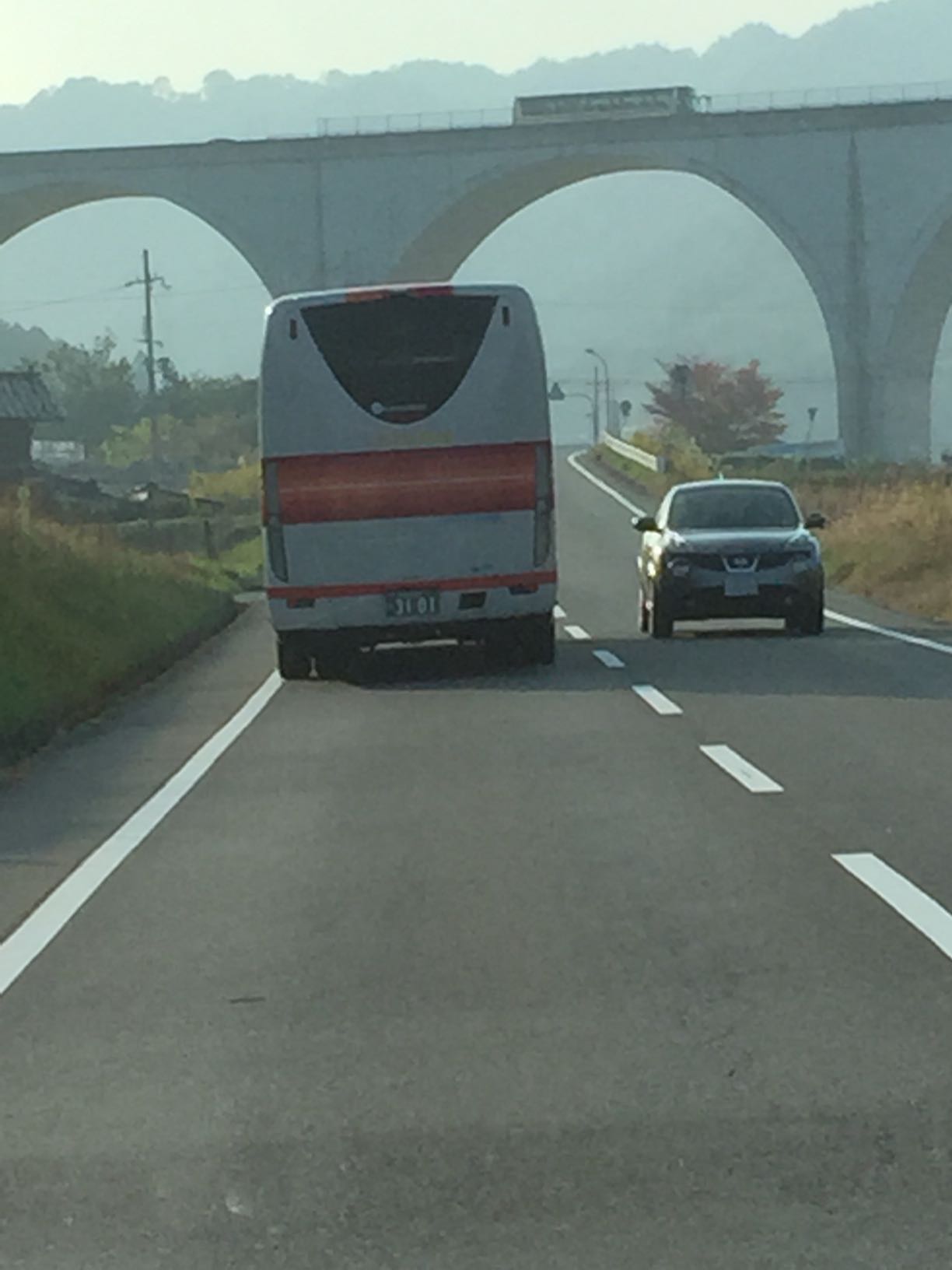 ニコニコ号の前は何台も観光バスが走っています。