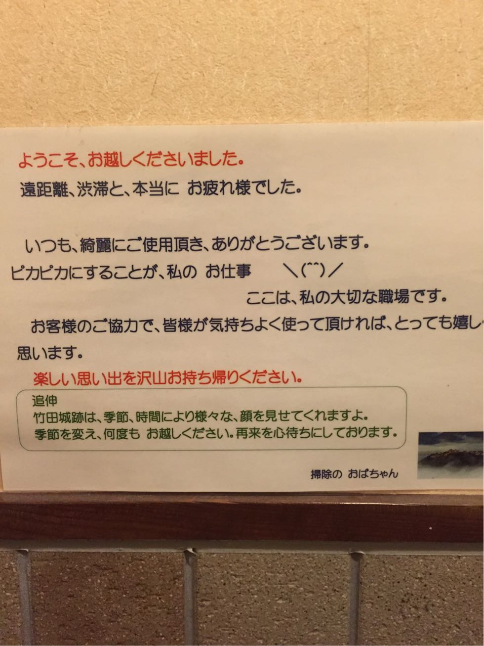 トイレには、こんなに優しい文章の貼り紙がありました♪
