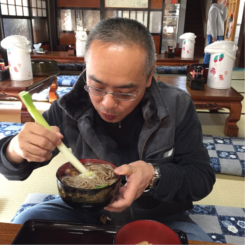 蕎麦を食べている陽ちゃん、とても疲れた顔しているよ!