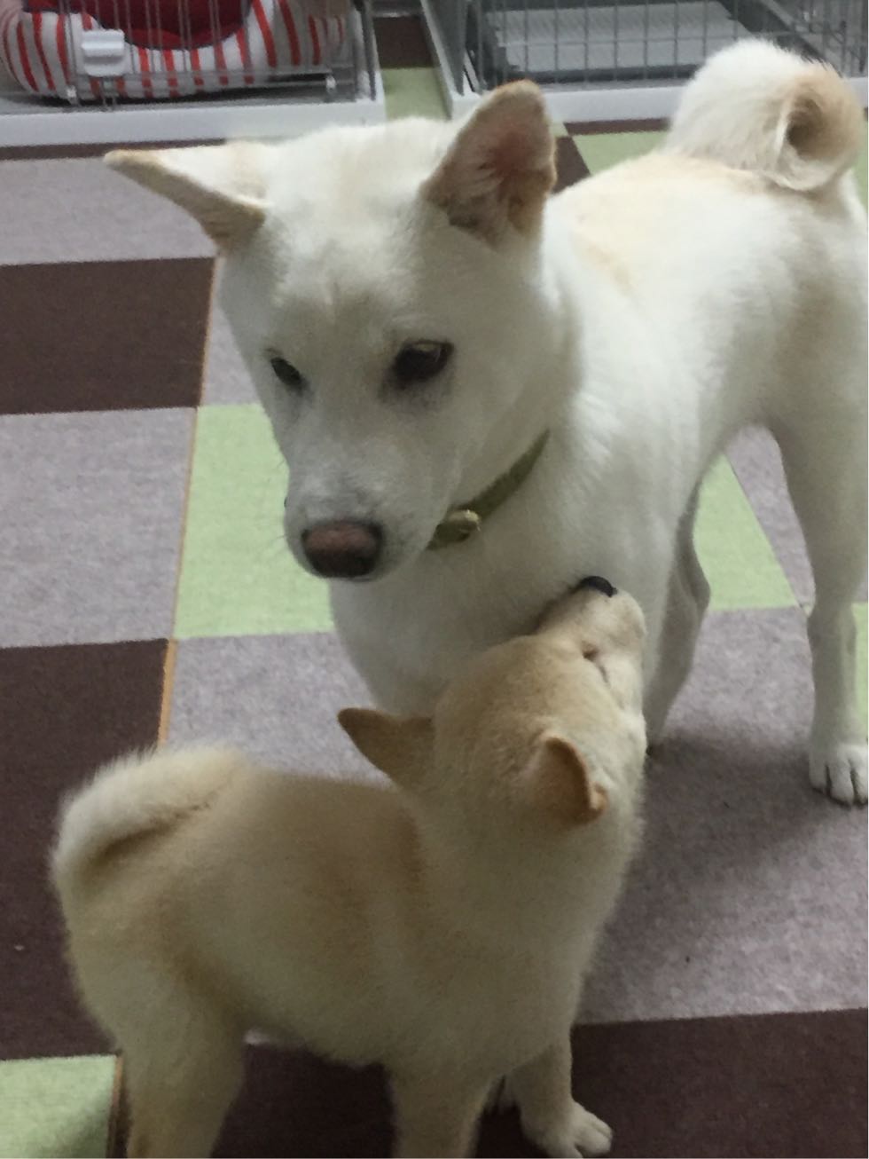 ワンちゃんはカメさんに興味があったようでした。^±^