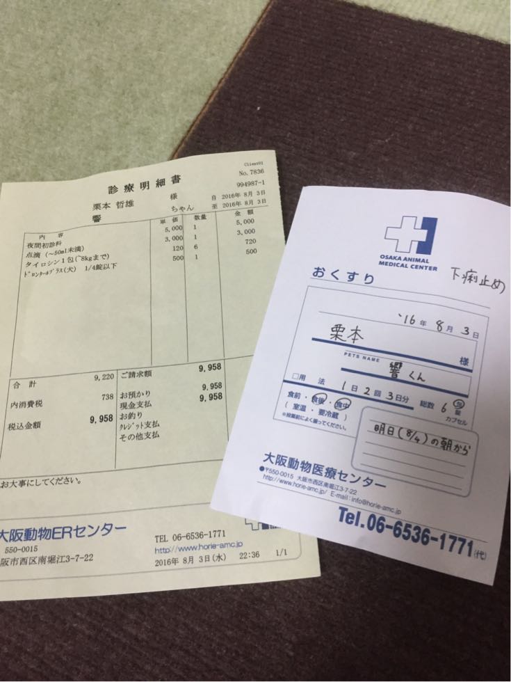 電話で連れて行くことを連絡すると「夜間なので3,4万円かかりますよ」と言われた。