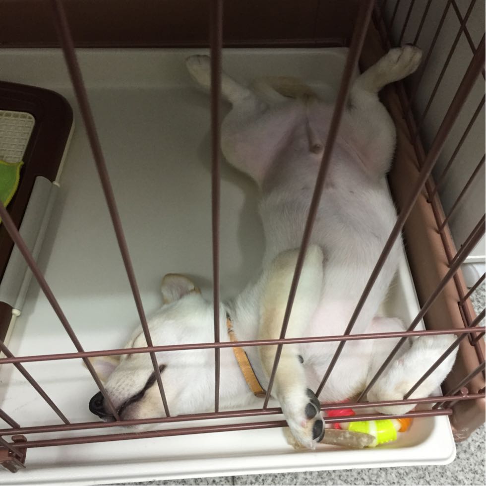 勤務中は、陽ちゃんの椅子の後ろのゲージでほとんど寝てます(苦笑)