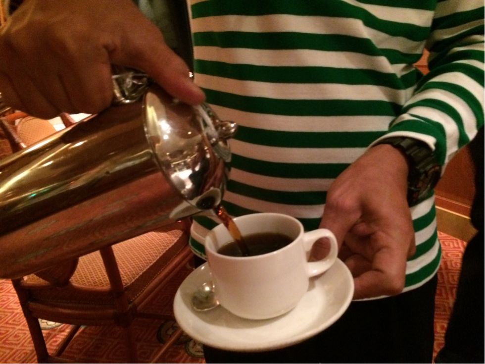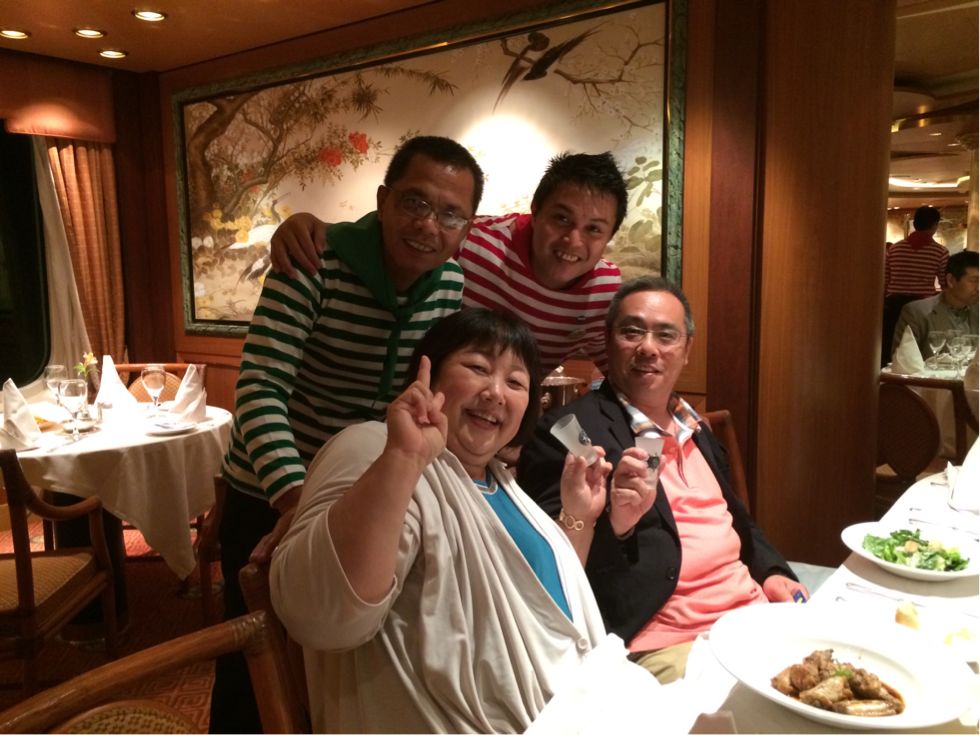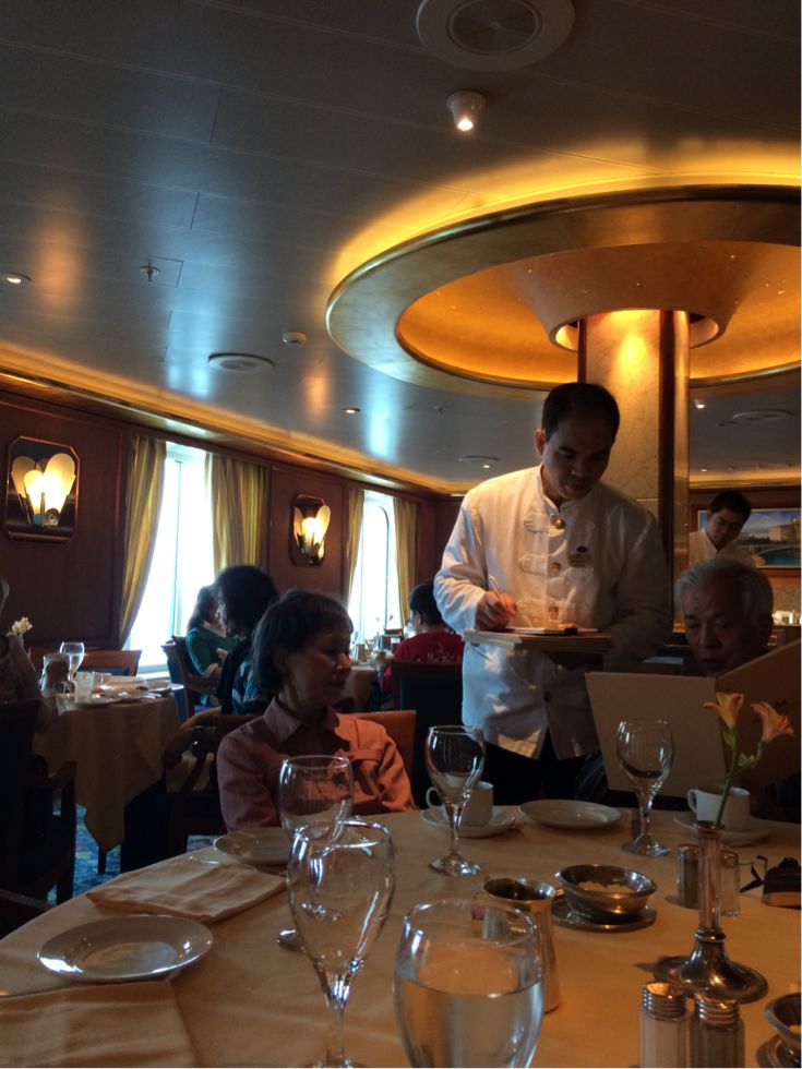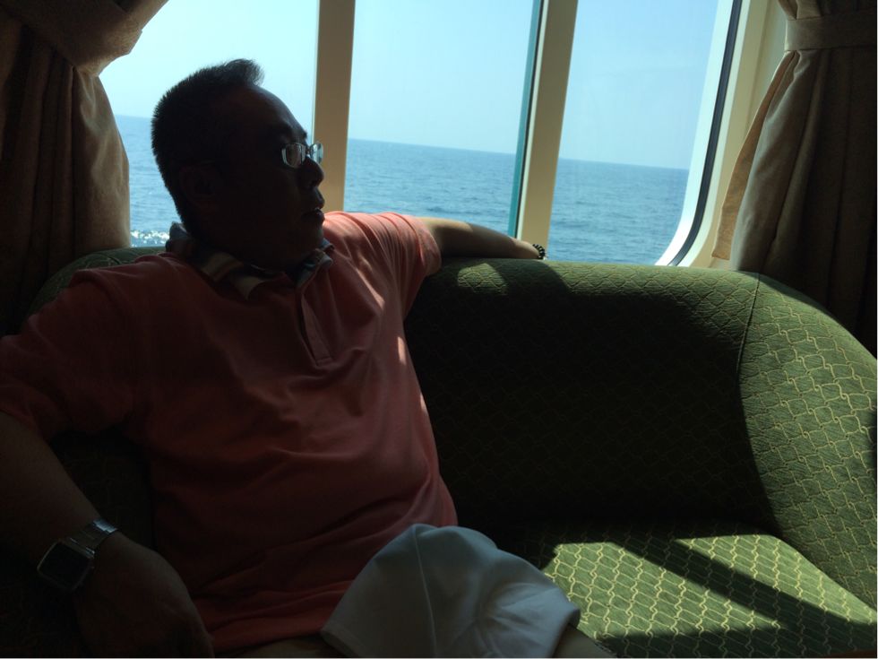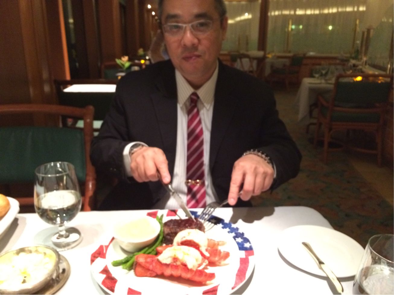 彼は、一番前の席に座りゆっくりお寿司を食べ