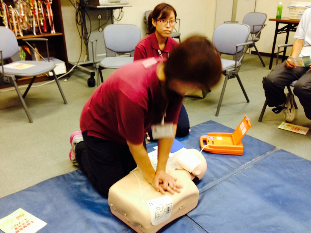 胸部圧迫やAEDの使い方はスタッフはみんな理解できています