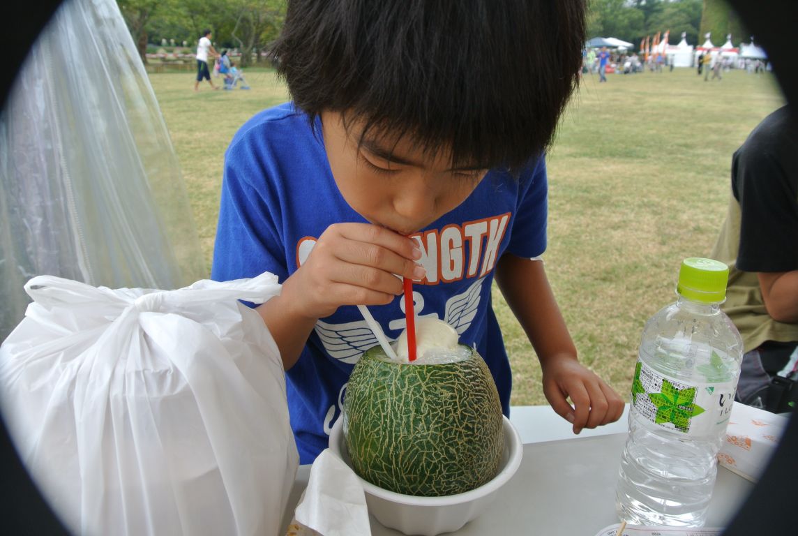 中のメロンの果肉はスプーンで削って食べられます♪