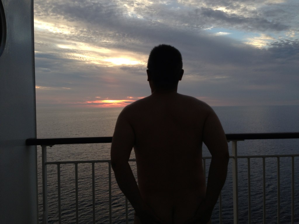 何も素っ裸で夕焼けを眺める必要もないと思うが・・・・・