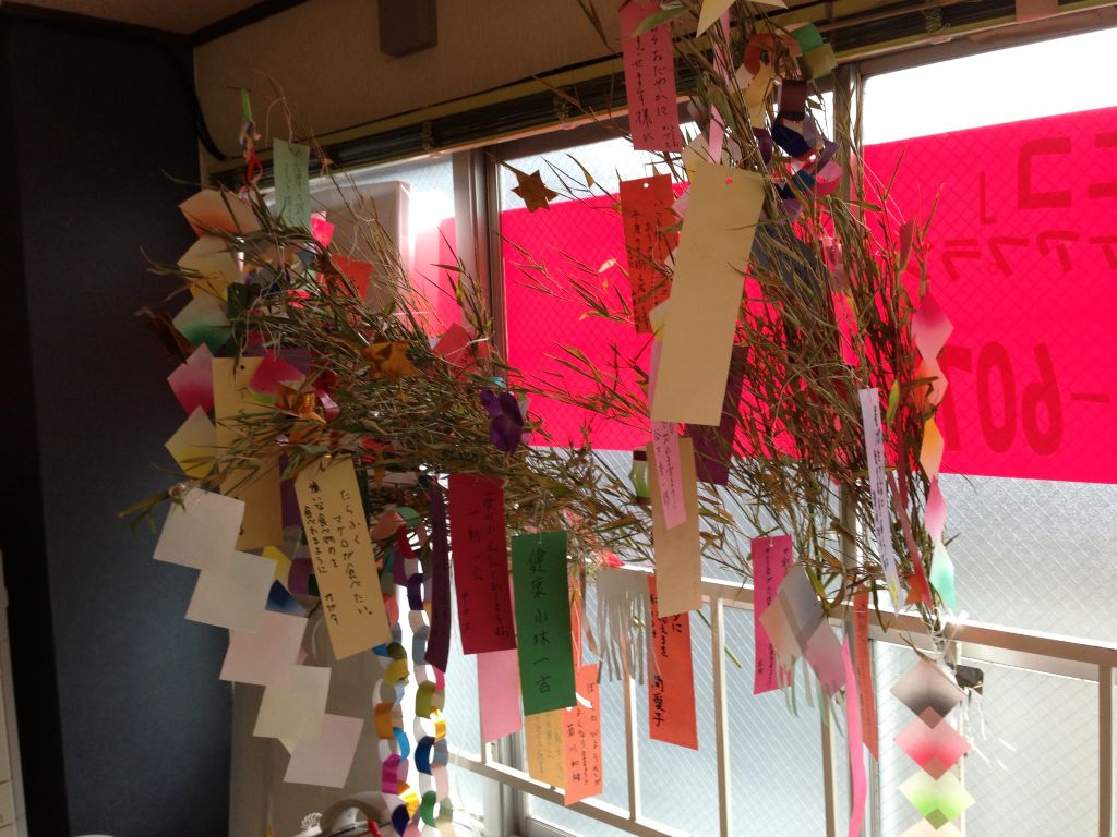 利用者さんのお願い事をいっぱい笹の葉に結びました。