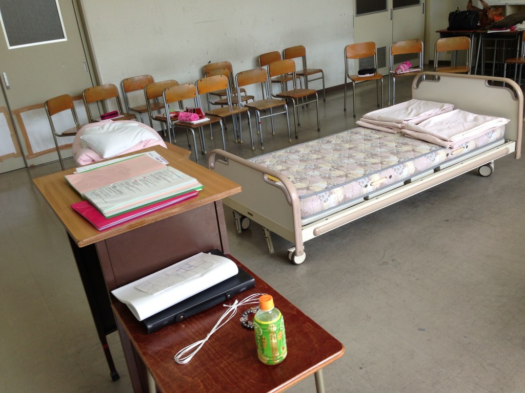高校生の授業は実技に関しては近くの介護施設が提携先で施設のベットなどを使用して