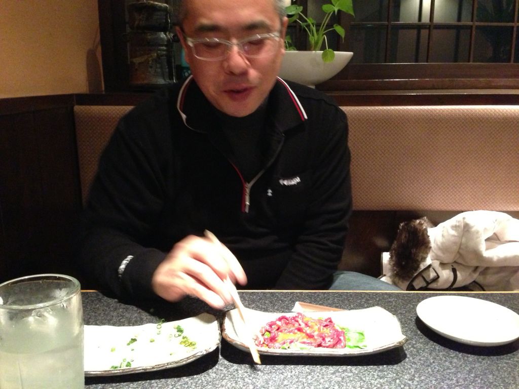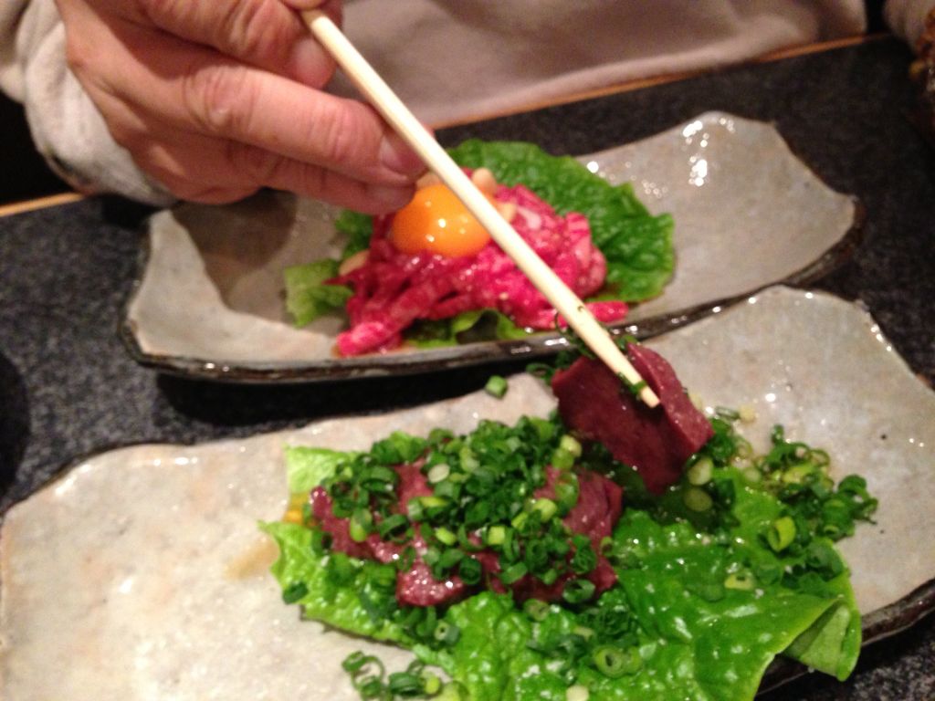 旦那様は昨日も塩レバーとユッケに始まりユッケで終わる♪