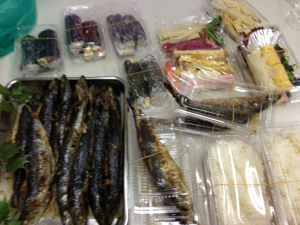 今週も日曜出勤で 朝から巻き寿司といわしに囲まれ