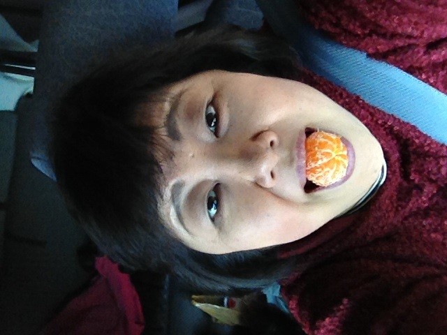 寝ている陽ちゃんの口の中にミカンが・・・・(苦笑)
