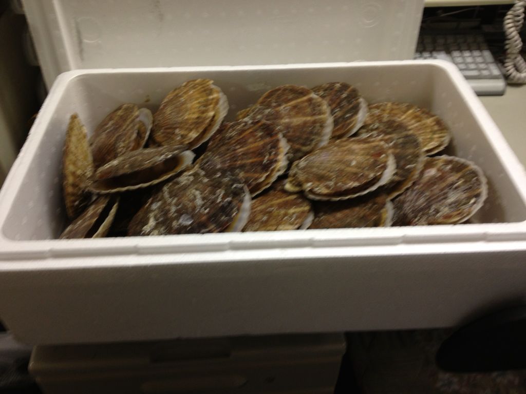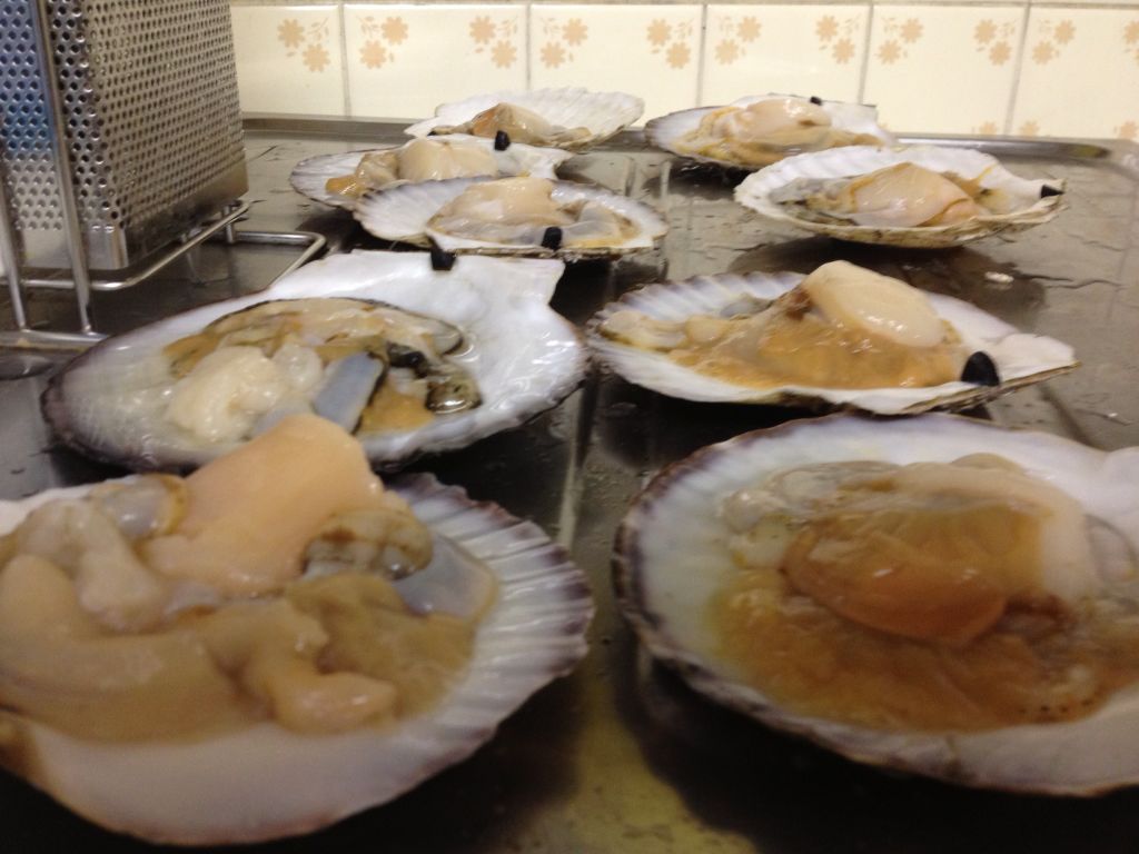 こんなに大きな帆立貝に挟まれたんですよ(苦笑)