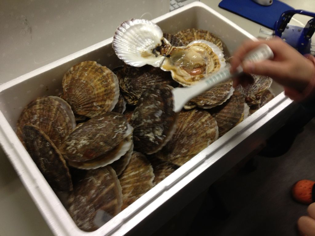 パカッとホタテを開けてみせたのです(笑)