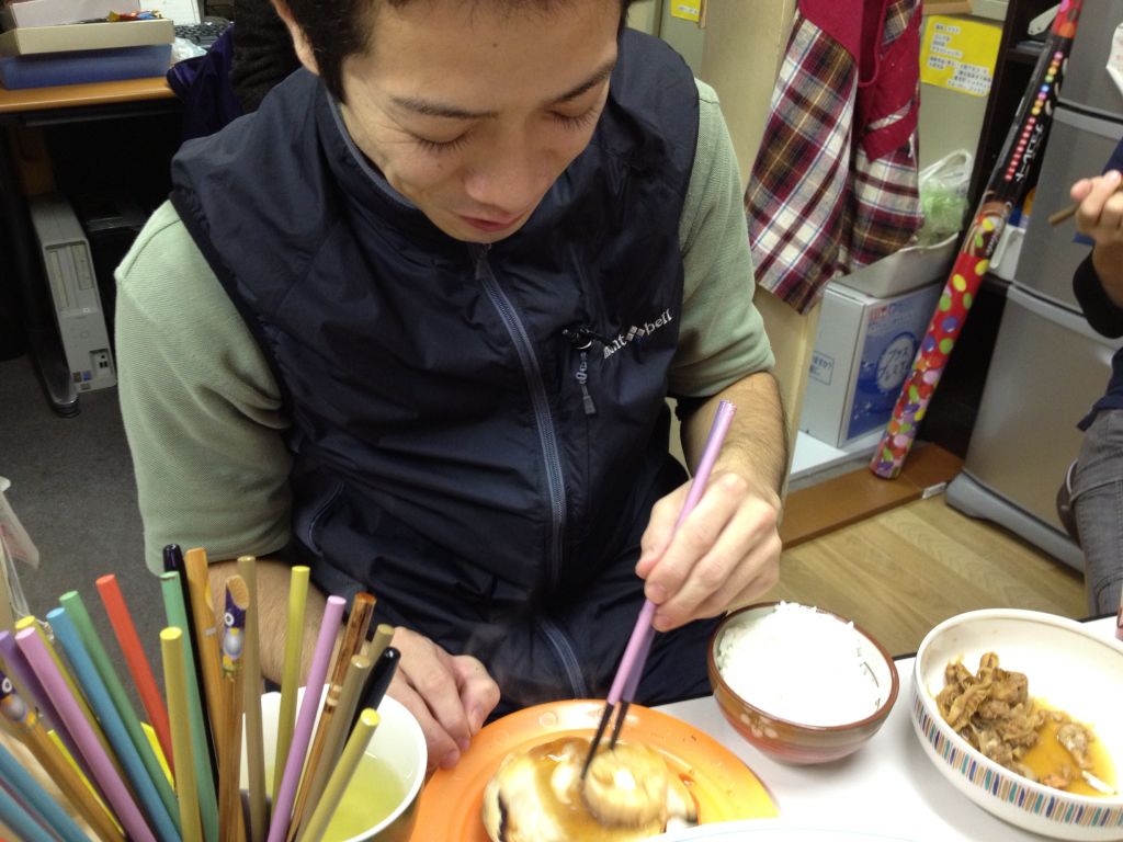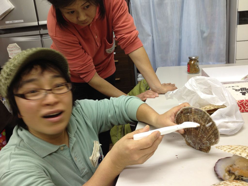 陽ちゃんは知ったかぶりをして、一緒に入っていたヘラで貝柱を外して
