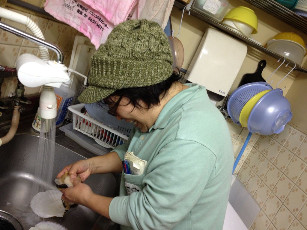 貝柱を外すのに 真剣です♪