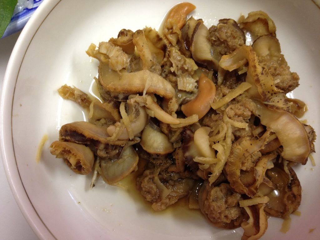 ホタテのひもは生姜とともに炊いてみました♪