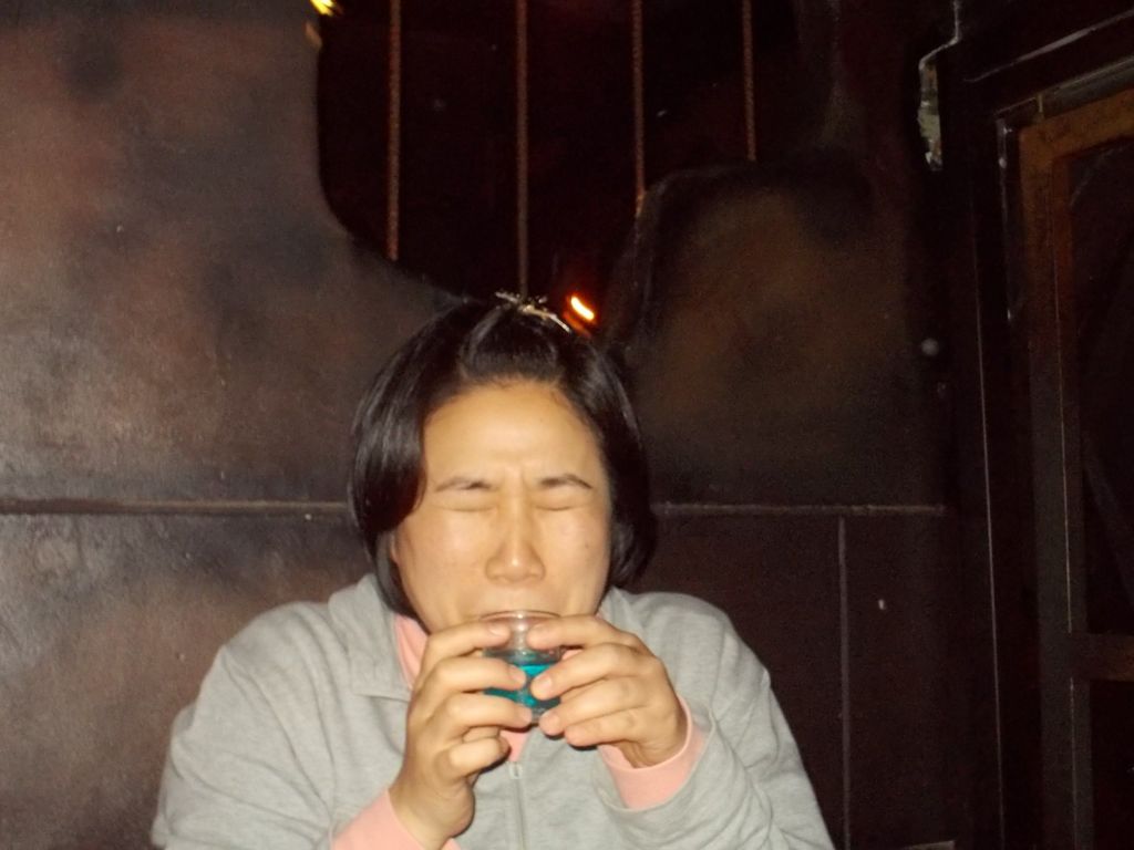 グツグツ泡の出るフラスコの黄色い液体を混ぜてから飲むのです