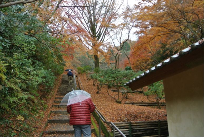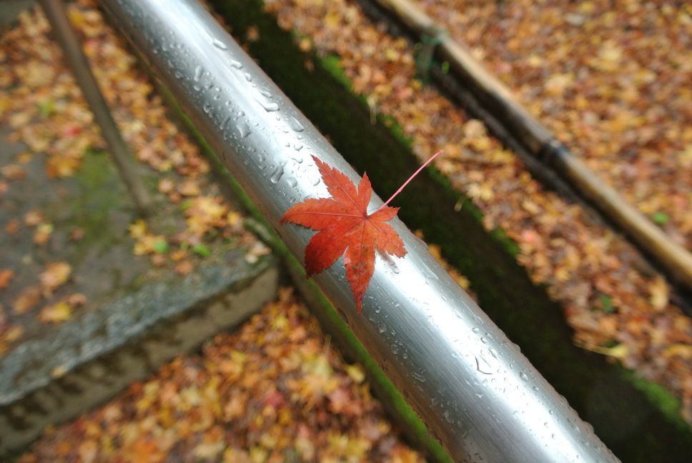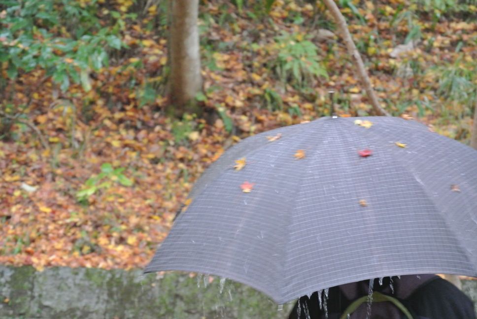 雨と一緒に落ち葉もパラパラ振ってきます。