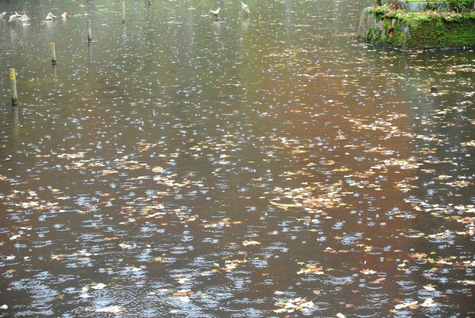 ただ・・・湖面だけは落ち葉と雨粒で賑やかでした♪
