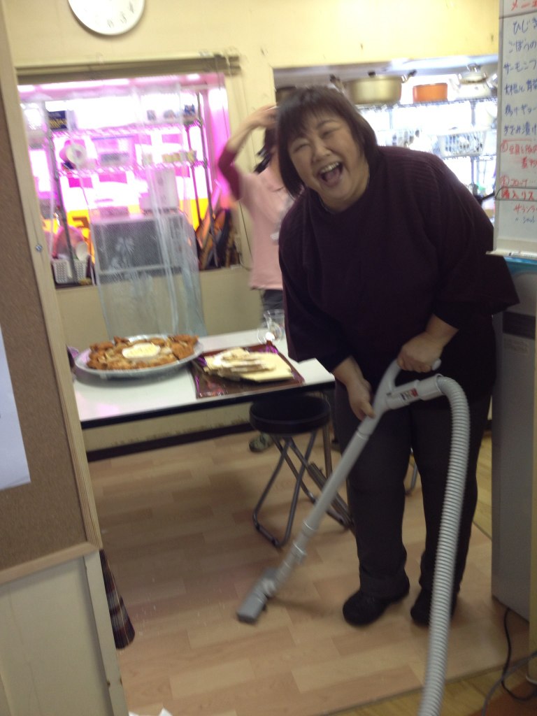 それを横目で見ている20代のスタッフ(笑)