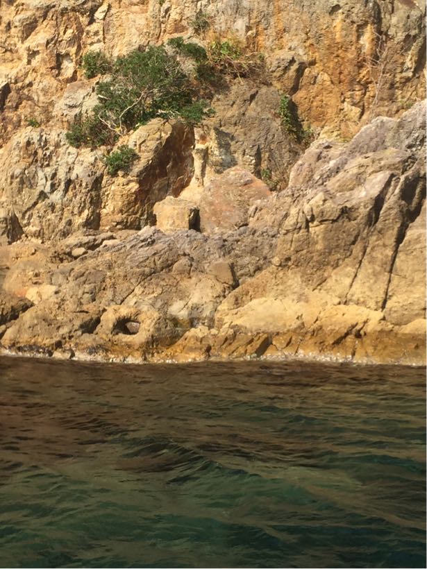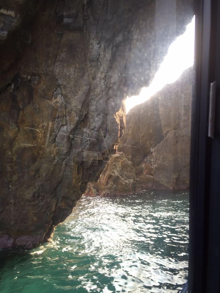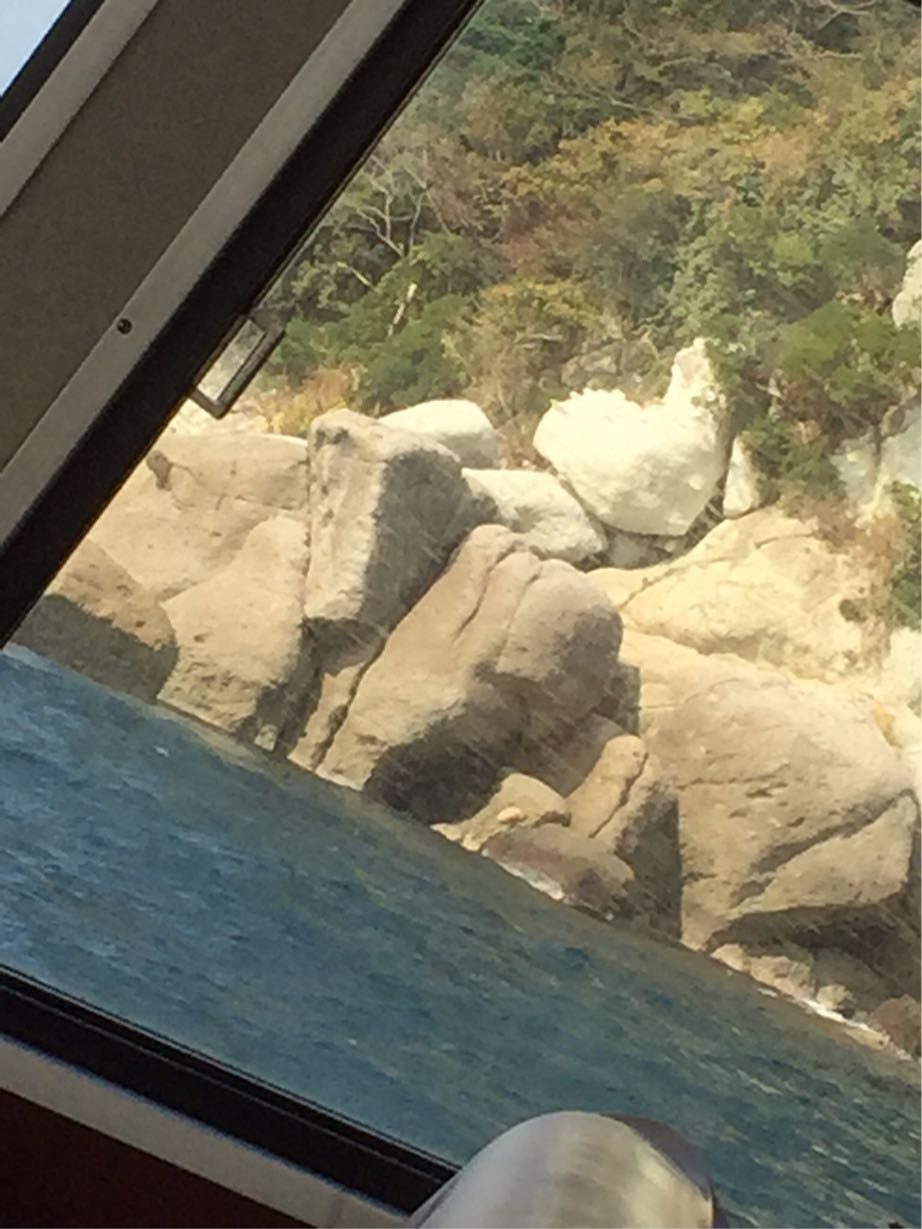 こんな岩がスレスレな場所へも遊覧船は入って行きます。