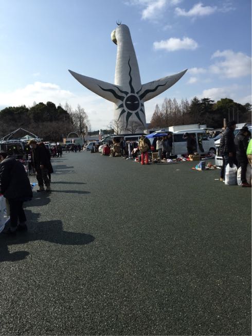 いいお天気で、太陽の塔の後ろでのガレッジセールは
