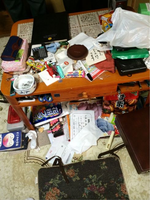 午前中に掃除をしたお宅の2倍以上の荷物で、歩く所も無いほどです。